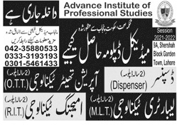 Interested applicants are informed that Advance Institute Of Professional Studies, Lahore admission are open and you can submit the applicaiton at the earliest time.