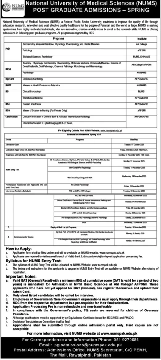 Detailed Application Process Eligibility criteria, How to apply Online for Admissions and Contact details are mentioned in the institution's official advertisement below and can also be found online at official website