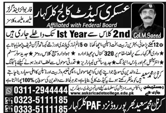 Interested applicants are informed that Askari Cadet College,kallarkahar, Kallar Kahar admission are open and you can submit the applicaiton at the earliest time.