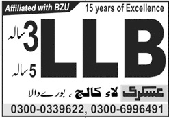 Interested applicants are informed that Askari Law College, Burewala admission are open and you can submit the applicaiton at the earliest time.