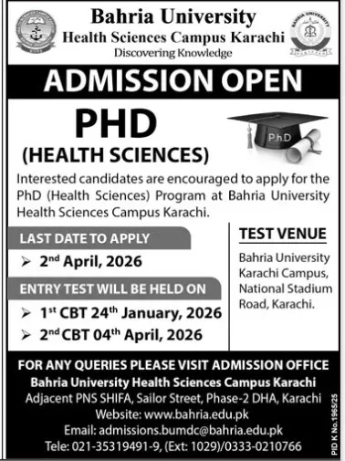Bahria University ( Karachi Campus ) ( BU) admission 2026 for DOCTORATE Courses / Degrees