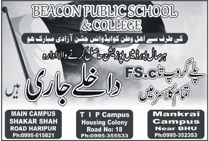 Beacon Public School Haripur admission office has announced that admission are open for session 2025.