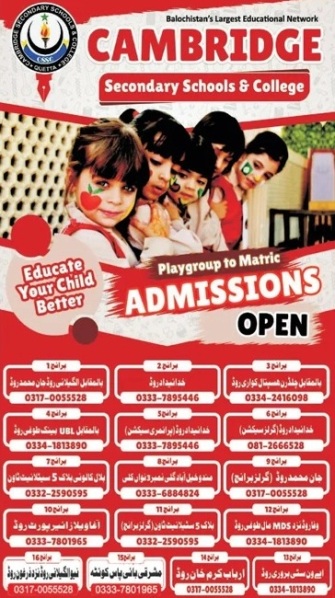 Interested applicants are informed that Cambridge Secondary School & Colleg, Girls, Quetta admission are open and you can submit the applicaiton at the earliest time.