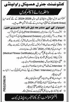 Last date to apply for Cantonment General Hospital CGH Rawalpindi admission 2026 is 23 October, 2024