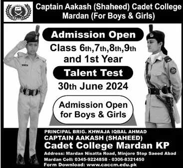 Interested applicants are informed that Captain Akaash Shaheed Cadet College, Mardan admission are open and you can submit the applicaiton at the earliest time.