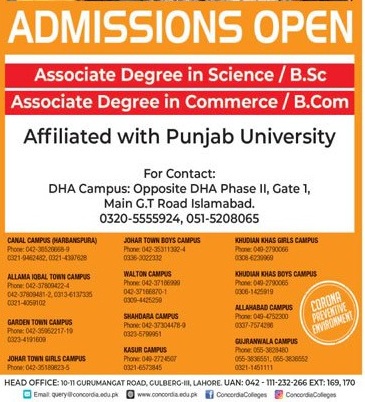 Interested applicants are informed that Concordia Colleges, Islamabad admission are open and you can submit the applicaiton at the earliest time.