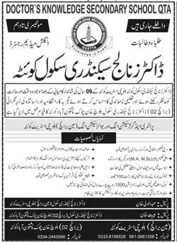 Interested applicants are informed that Doctors Knowledge Secondary School, Quetta admission are open and you can submit the applicaiton at the earliest time.
