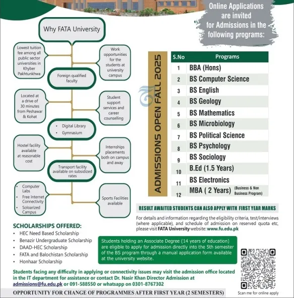 Last date to apply for Fata University FU Darra Adam Khail admission 2025 is 16 August, 2025