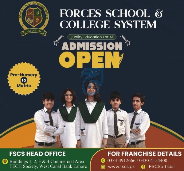 Interested applicants are informed that Forces School And College System, Lahore admission are open and you can submit the applicaiton at the earliest time.