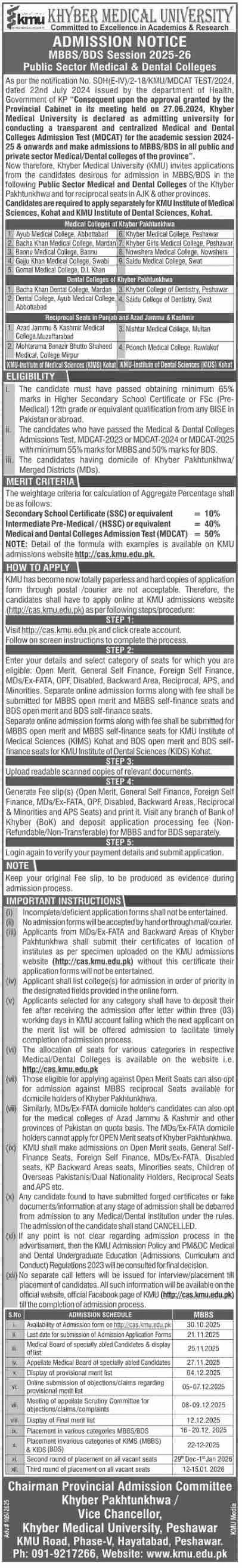 Last date to apply for Gomal Medical College GMC D.i. Khan admission 2025 is 21 November, 2025