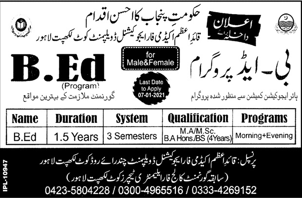 ![admission announcement of Government College For Elementary Teachers[kot Lakpat]](https://www.eduvision.edu.pk/admissions/quaid-e-azam-academy-for-educational-development-lahore-admission-25-12-20.jpg)