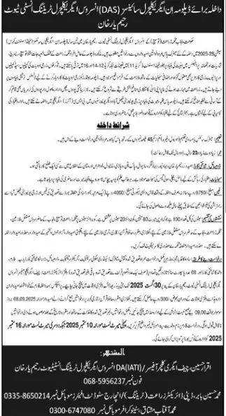 Last date to apply for Inservice Agricultural Training Institute IATI Rahim Yar Khan admission 2026 is 30 August, 2025