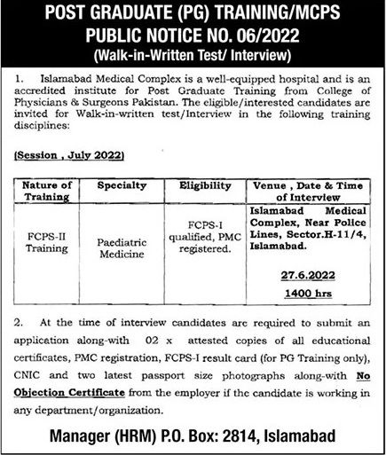 Interested applicants are informed that Islamabad Medical Complex, Islamabad admission are open and you can submit the applicaiton at the earliest time.