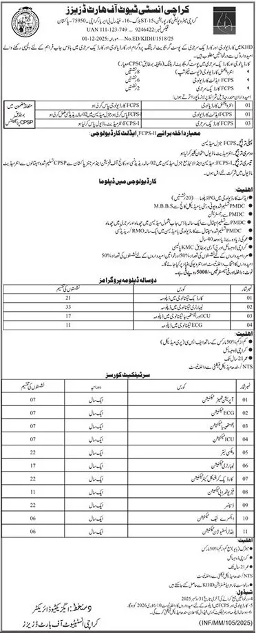 Last date to apply for Karachi Institute Of Heart Deseases KIHD Karachi admission 2026 is 31 December, 2025