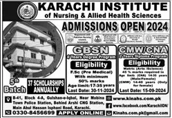 Karachi Institute Of Nursing And Allied Health Sciences KINAHS Karachi Admission 2026 Last date