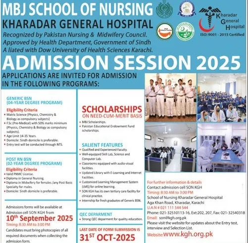 Last date to apply for Kharadar General Hospital KGH Karachi admission 2025 is 31 October, 2025