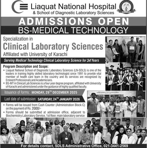 Liaquat National Medical College ( LNMC) admission 2026 for BS Courses / Degrees
