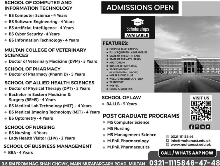 Multan University Of Science And Technology Multan admission office has announced that admission are open for session 2026.