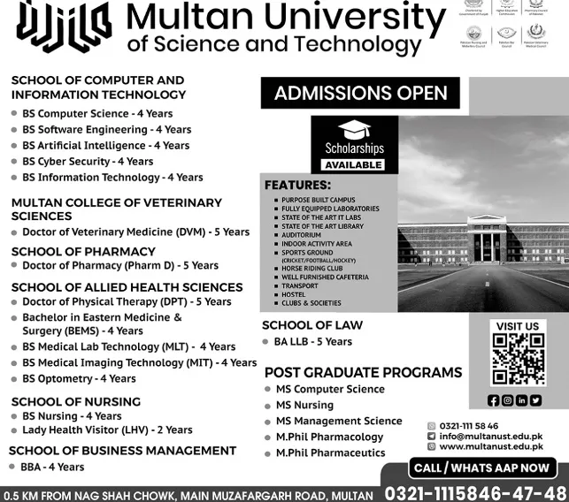 Multan University Of Science And Technology Multan admission office has announced that admission are open for session 2025.
