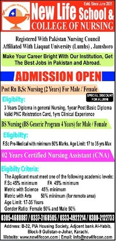 New Life K K College Of Nursing NLKKCN Karachi Admission 2026 Last date