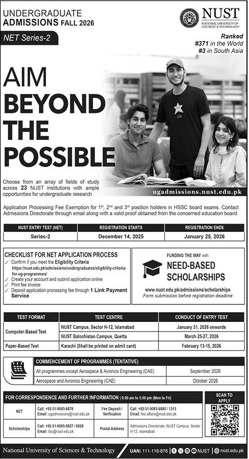 Pakistan Navy Engineering College Karachi admission office has announced that admission are open for session 2026.