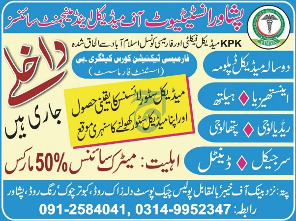 Peshawar Institute Of Medical And Management Sciences admission 2026 for DIPLOMA / CERT (After Matric) Courses / Degrees