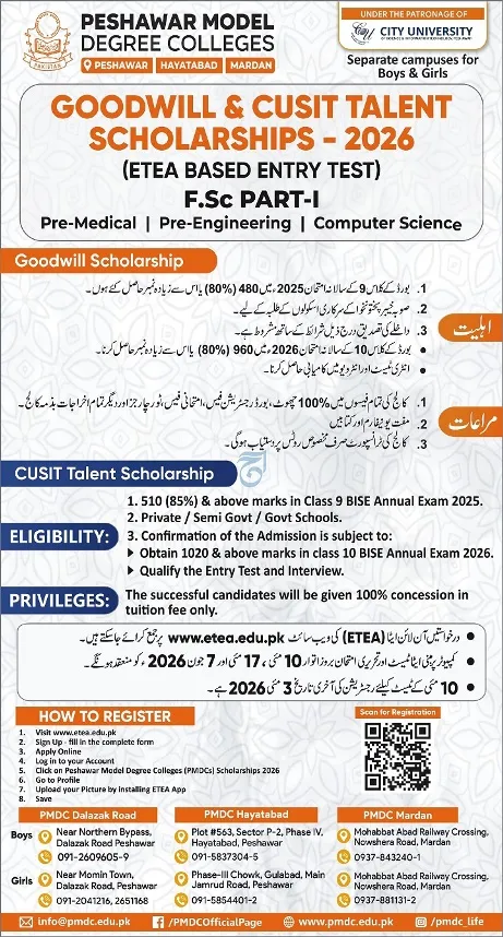 Peshawar Model Degree College For Boys PMDC Peshawar Admission 2026 Last date