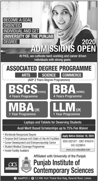 Last date to apply for Punjab Institute Of Contemporary Sciences PICS Lahore admission 2025 is 10 October, 2020