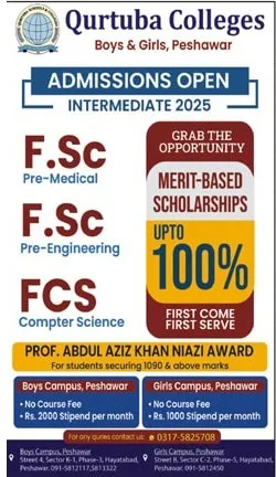 Qurtaba College For Boys Peshawar admission office has announced that admission are open for session 2025.
