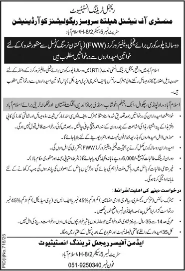 Regional Training Institute RTI Islamabad Admission 2026 Last date