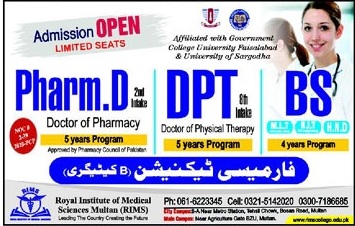 Royal Institute Of Medical Sciences RIMS Multan Admission 2025 Last date