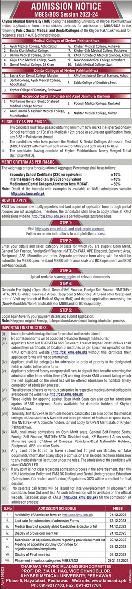 Last date to apply for Saidu Medical College Swat Swat admission 2026 is 12 December, 2023