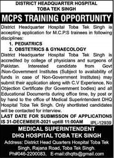 Last date to apply for School Of Nursing, D H Q Hospital SON Toba Tek Singh admission 2026 is 31 December, 2021