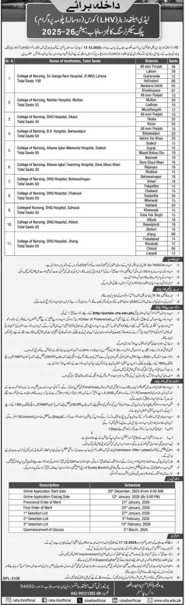 Last date to apply for School Of Nursing & Midwifery Sir Ganga Ram Hospital SNM Lahore admission 2026 is 12 January, 2026