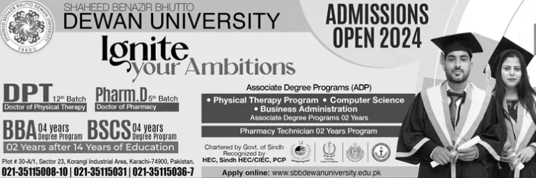 Interested applicants are informed that Shaheed Benazir Bhutto Dewan University, Karachi admission are open and you can submit the applicaiton at the earliest time.