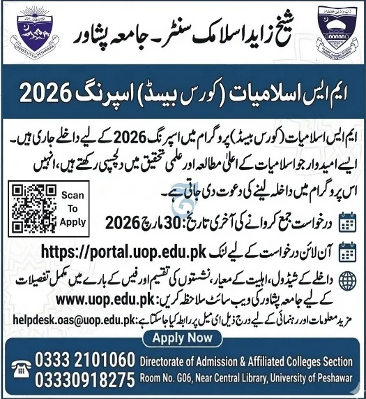 Sheikh Zayed Islamic Centre Peshawar Admission 2026 Last date