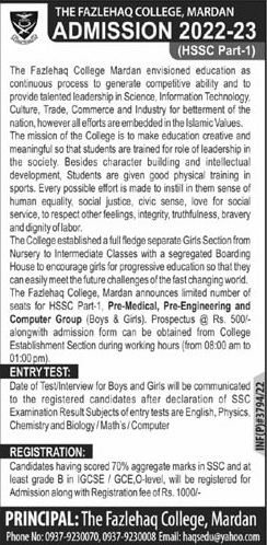 Interested applicants are informed that The Fazlehaq College, Mardan admission are open and you can submit the applicaiton at the earliest time.