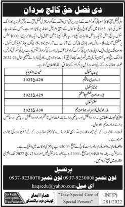 Interested applicants are informed that The Fazlehaq College, Mardan admission are open and you can submit the applicaiton at the earliest time.