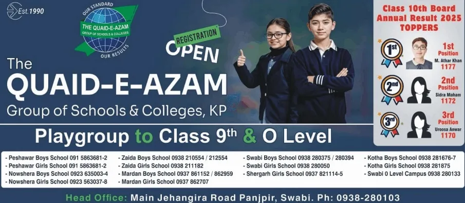 The Quaid-e-azam Group Of Schools And Colleges For Girls Nowshera admission office has announced that admission are open for session 2026.