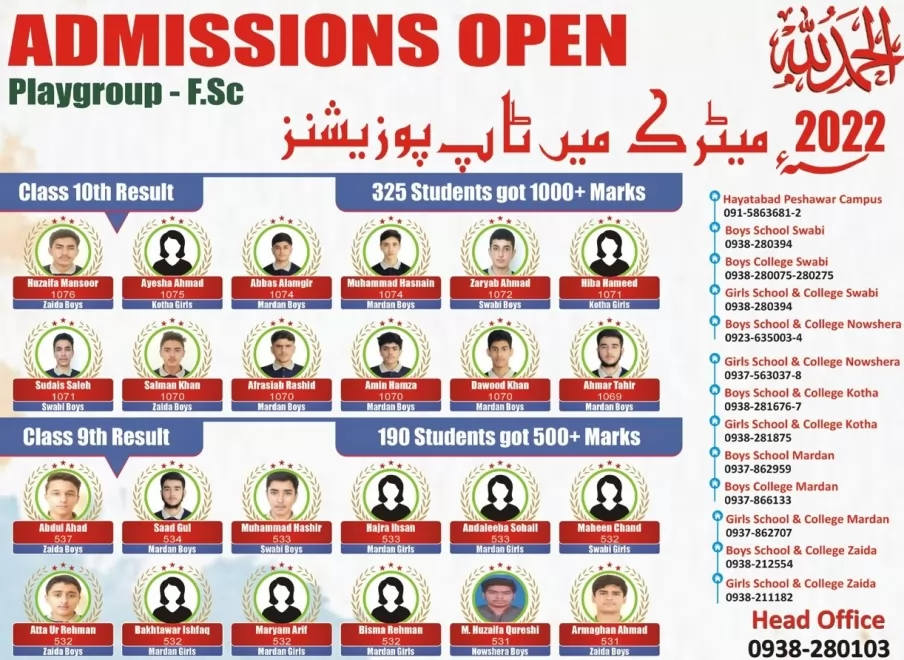 The Quiad-e-azam Group Of Schools & Colleges Charsadda admission office has announced that admission are open for session 2025.
