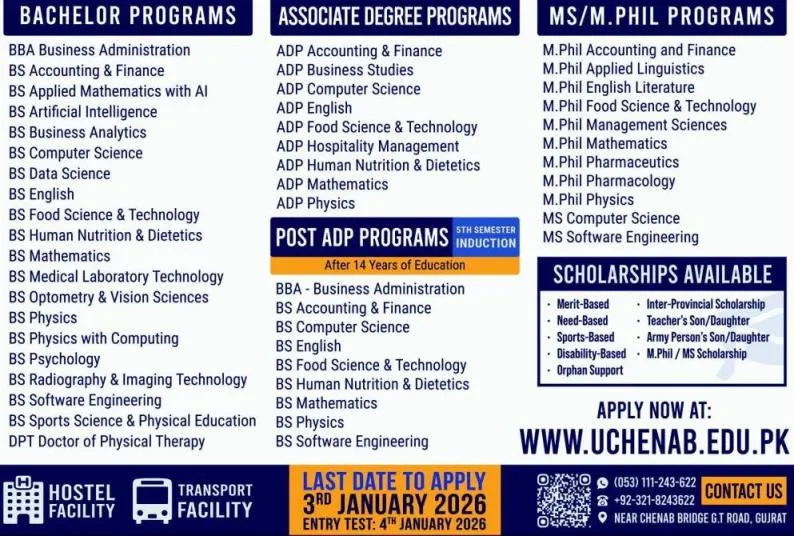 The University Of Chenab ( UCHENAB) admission 2026 for BS Courses / Degrees