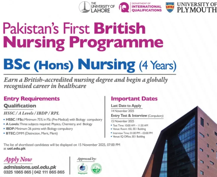 Last date to apply for The University Of Lahore ( Main Campus ) UOL Lahore admission 2025 is 14 November, 2025