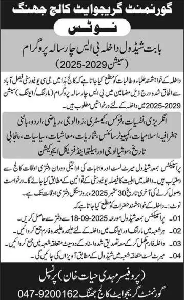 Admissions are open for follwoing Undergraduate Bachelor degree Programs.