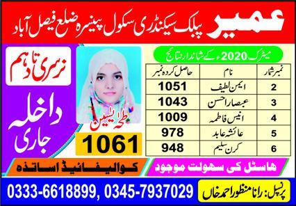 Umair Public Secondary School For Girls Faisalabad Admission 2026 Last date
