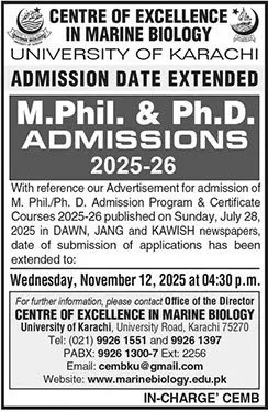 Last date to apply for University Of Karachi UOK Karachi admission 2025 is 12 November, 2025