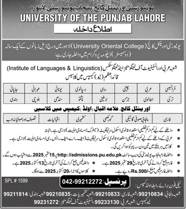 Last date to apply for University Of The Punjab PU Lahore admission 2025 is 29 September, 2025