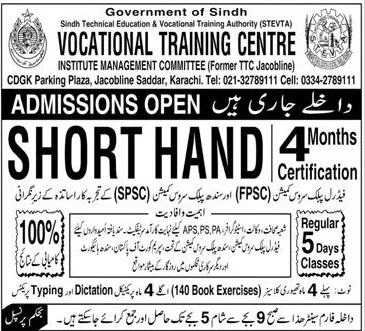 Interested applicants are informed that Vocational Tranining Center [jacobline], Karachi admission are open and you can submit the applicaiton at the earliest time.