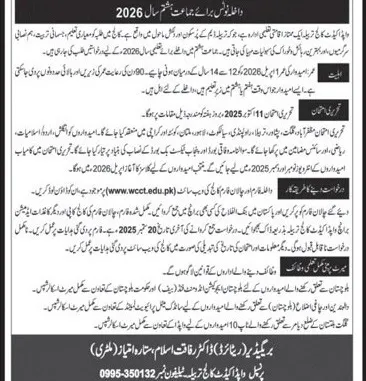 Last date to apply for Wapda College Tarbela Swabi admission 2026 is 20 September, 2025