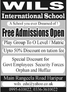 Interested applicants are informed that Wils International School, Haripur admission are open and you can submit the applicaiton at the earliest time.